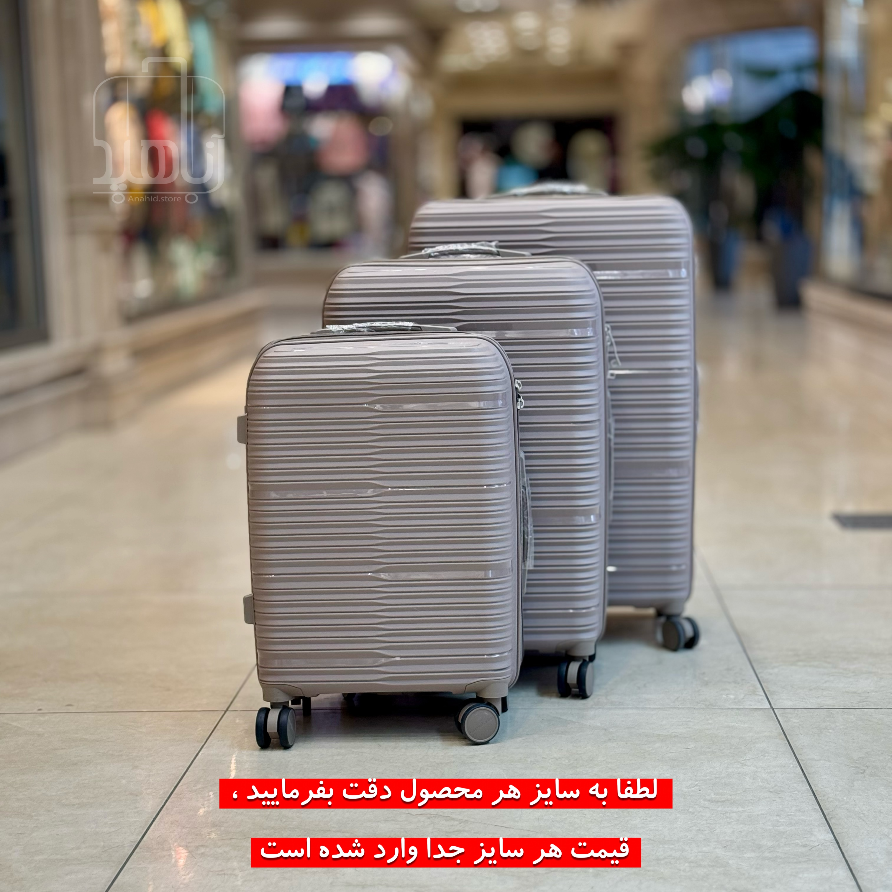 چمدان برند کارینا رنگ نسکافه ای جنس PP- قیمت هر سایز جدا وارد شده است