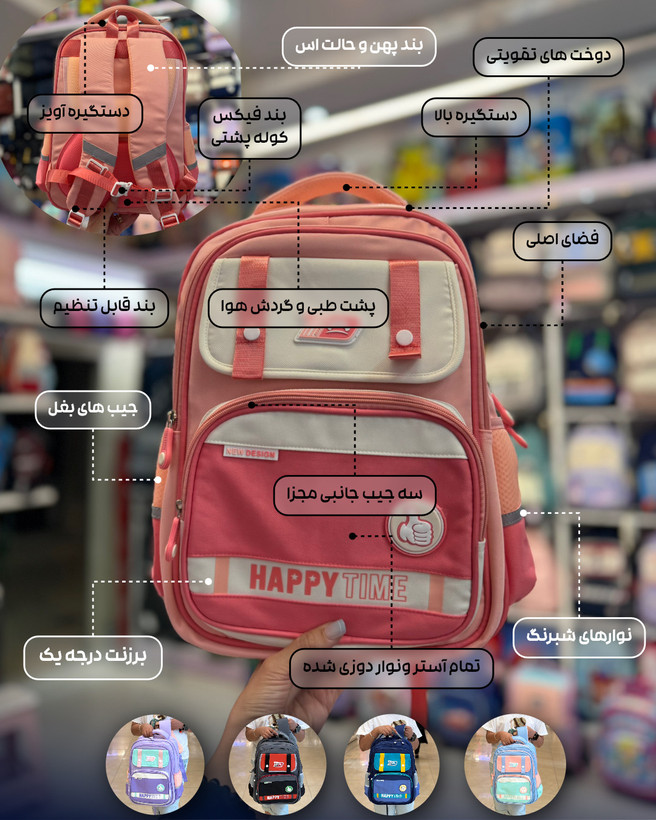 کوله پشتی مدرسهای دخترانه و پسرانه برند هپی تایم طرح لایک
