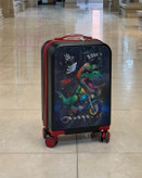 چمدان کودکانه پسرانه سه بعدی طرح پسر اسکیتی و تیرکس
