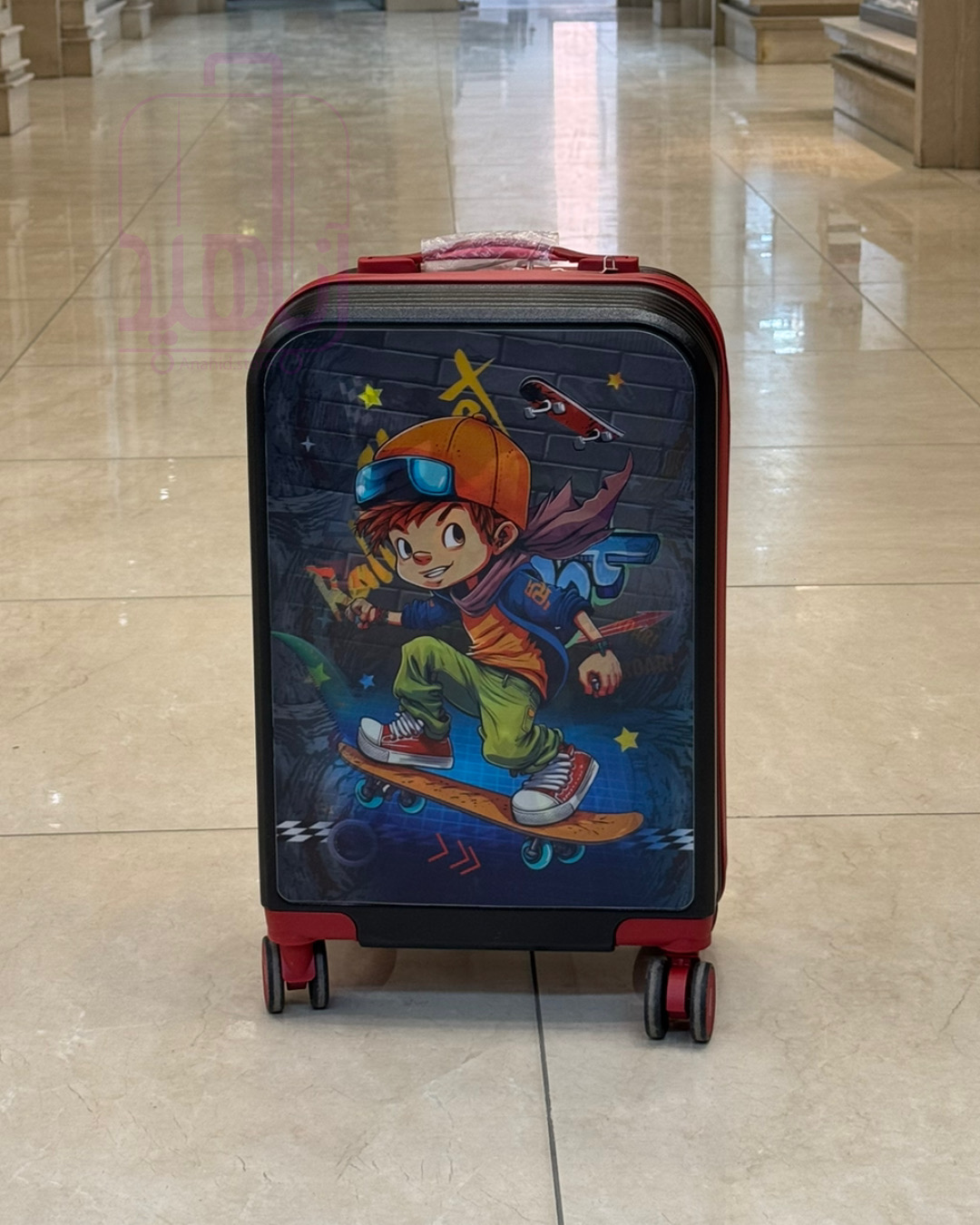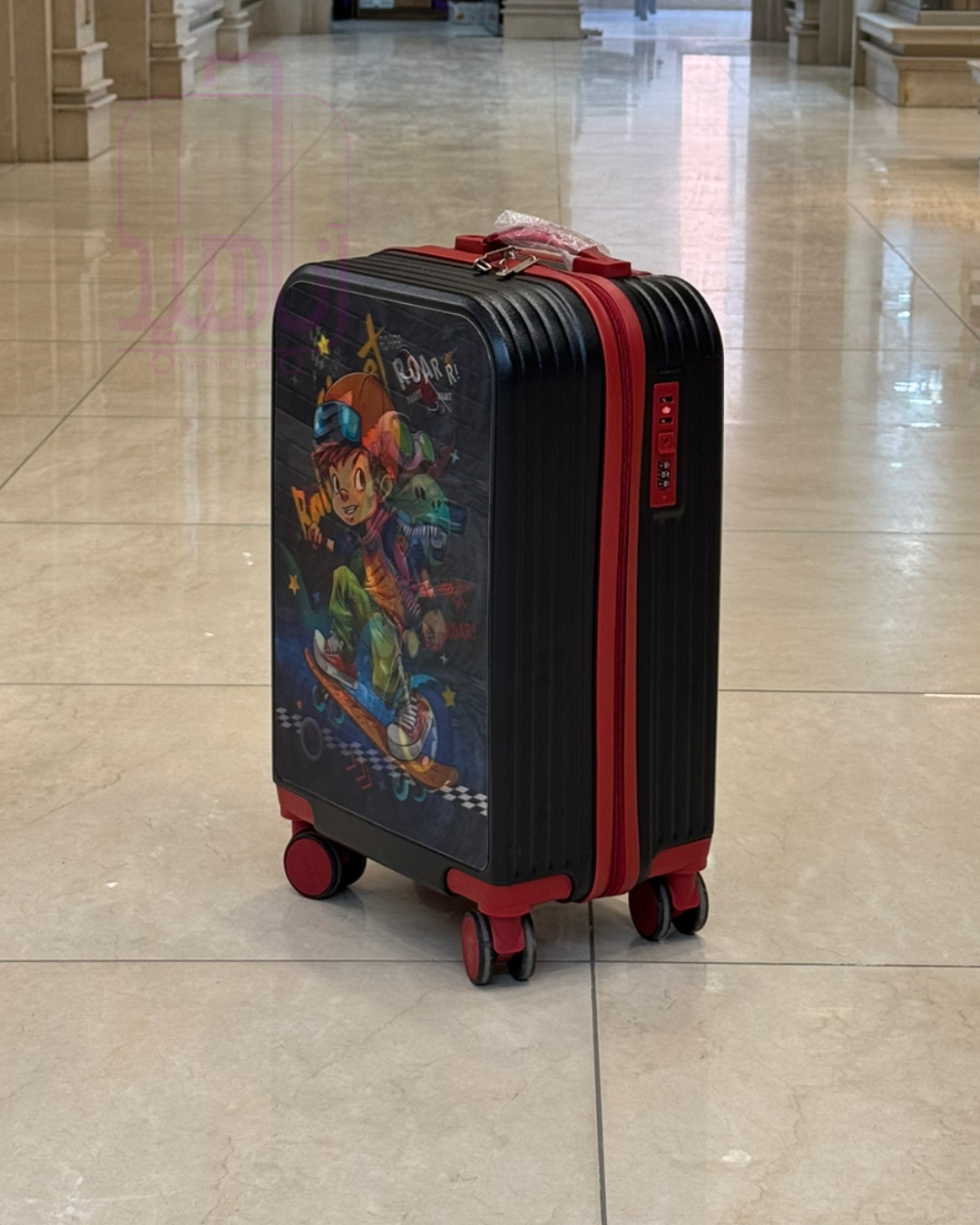 چمدان کودکانه پسرانه سه بعدی طرح پسر اسکیتی و تیرکس