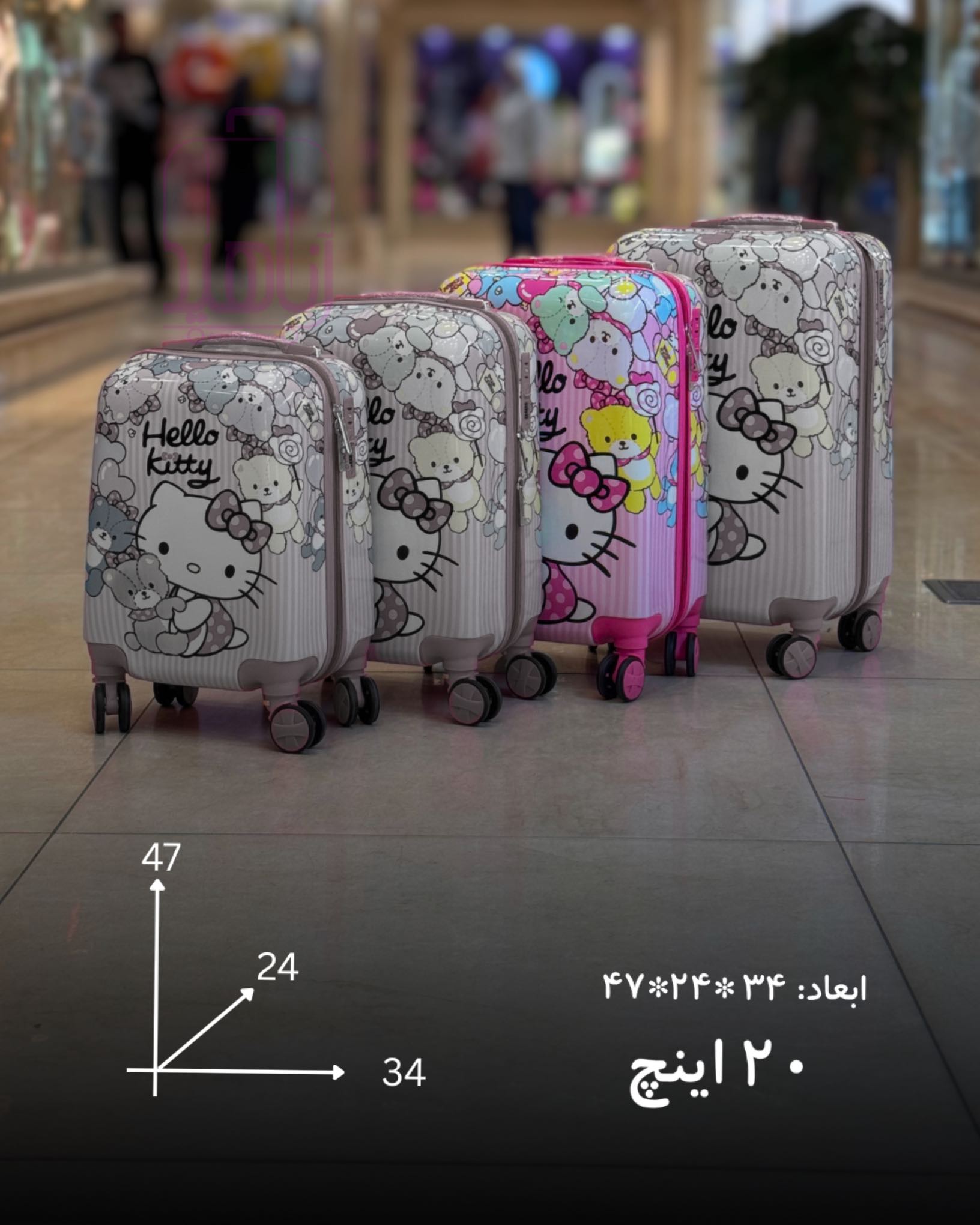 چمدان کودک فانتزی مدل کارتونی ۲۰ اینچ چرخ جداشو- طرح کیتی