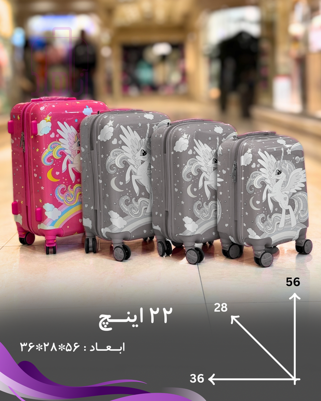 چمدان کودک فانتزی مدل کارتونی ۲۲ اینچ چرخ جداشو- طرح تک شاخ ۱