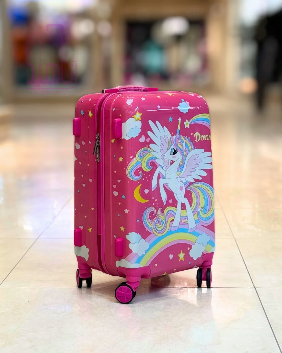 چمدان کودک فانتزی مدل کارتونی ۲۲ اینچ چرخ جداشو- طرح تک شاخ ۱