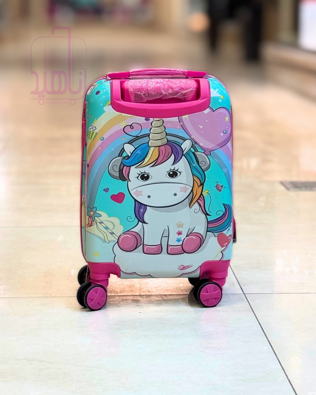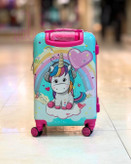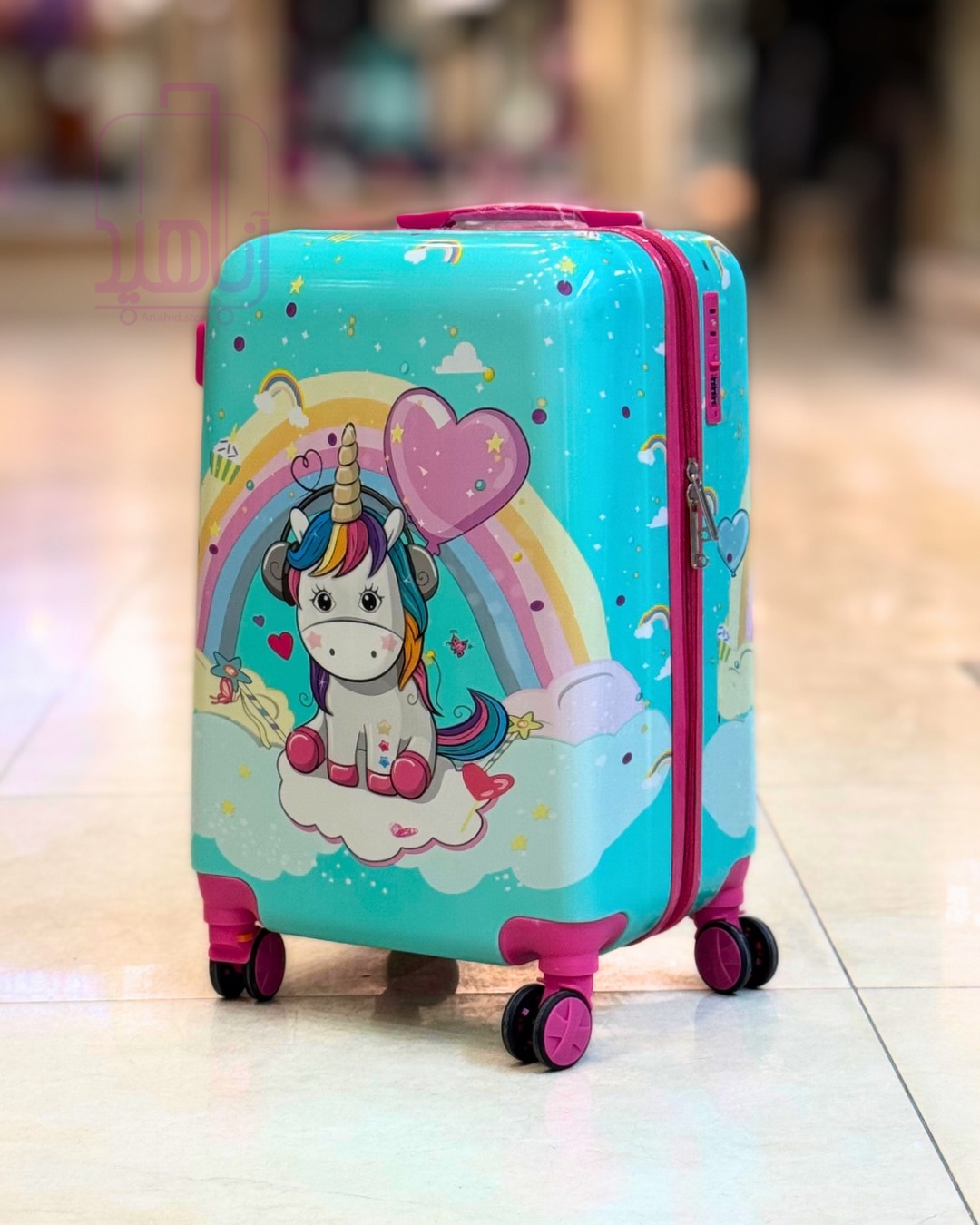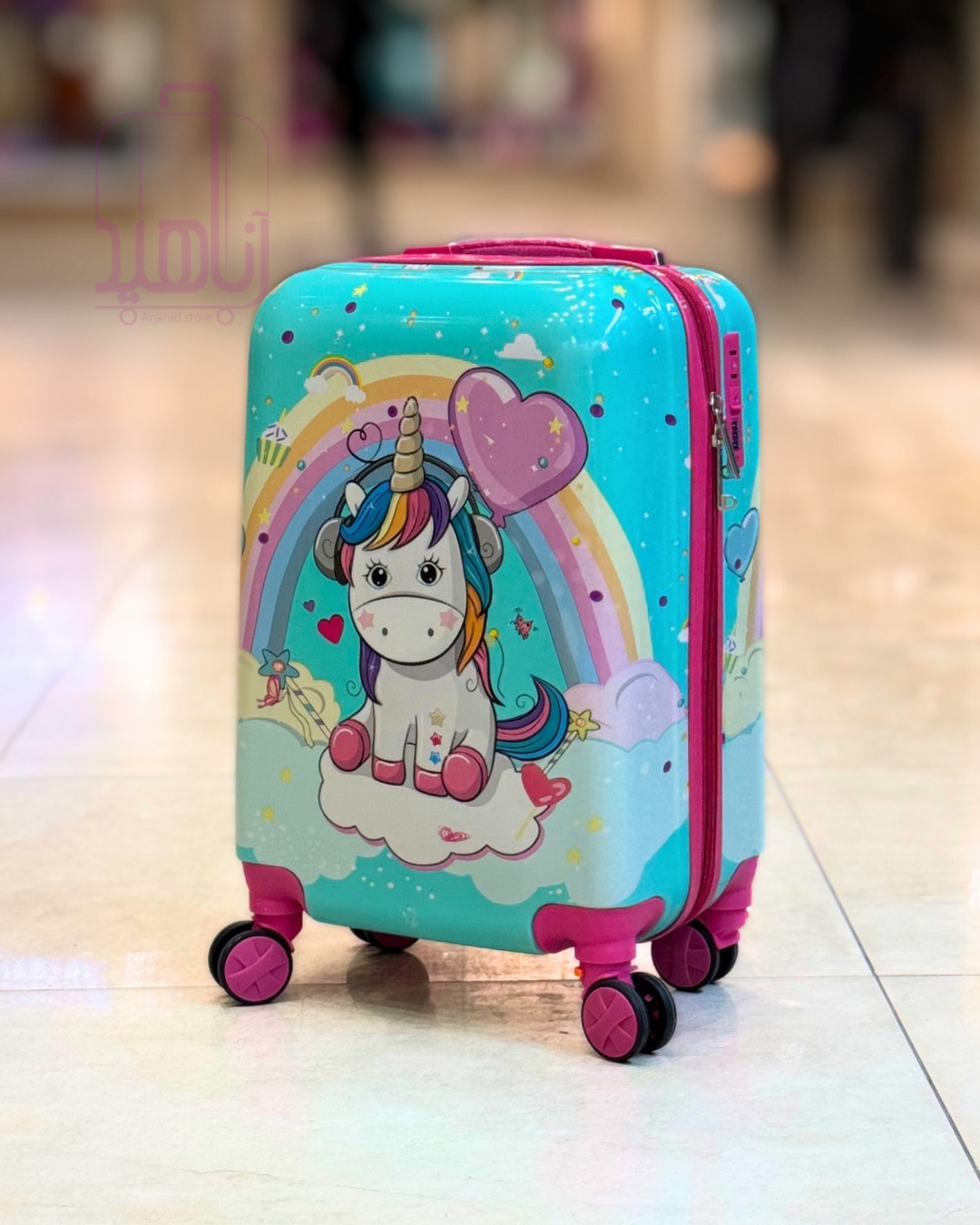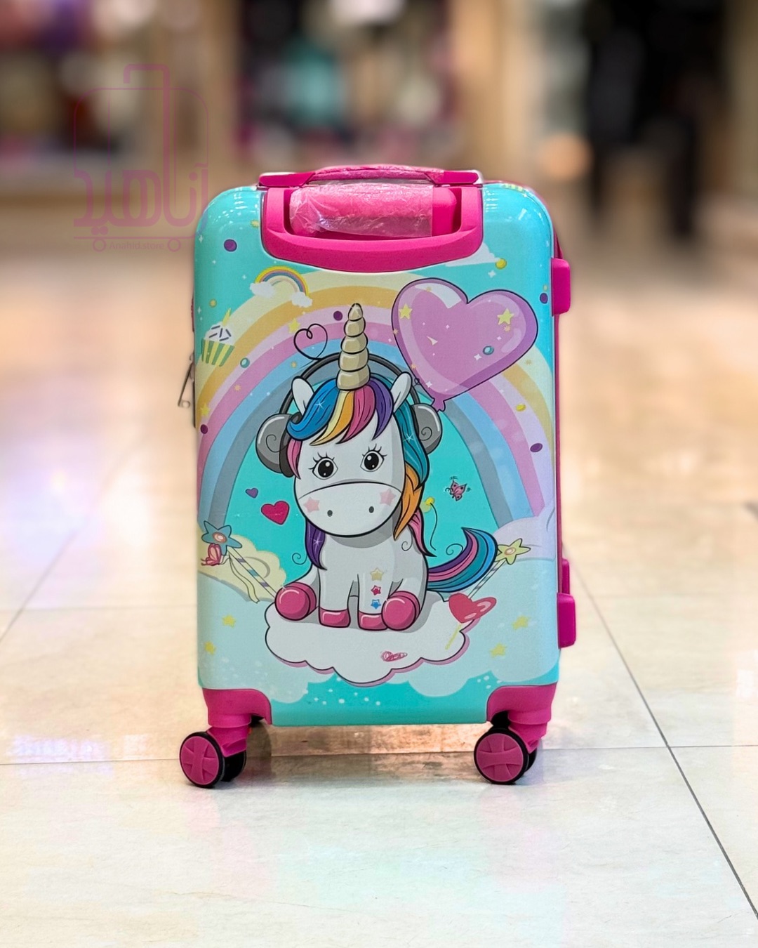 چمدان کودک فانتزی مدل کارتونی چرخ جداشو- طرح تک شاخ سبز