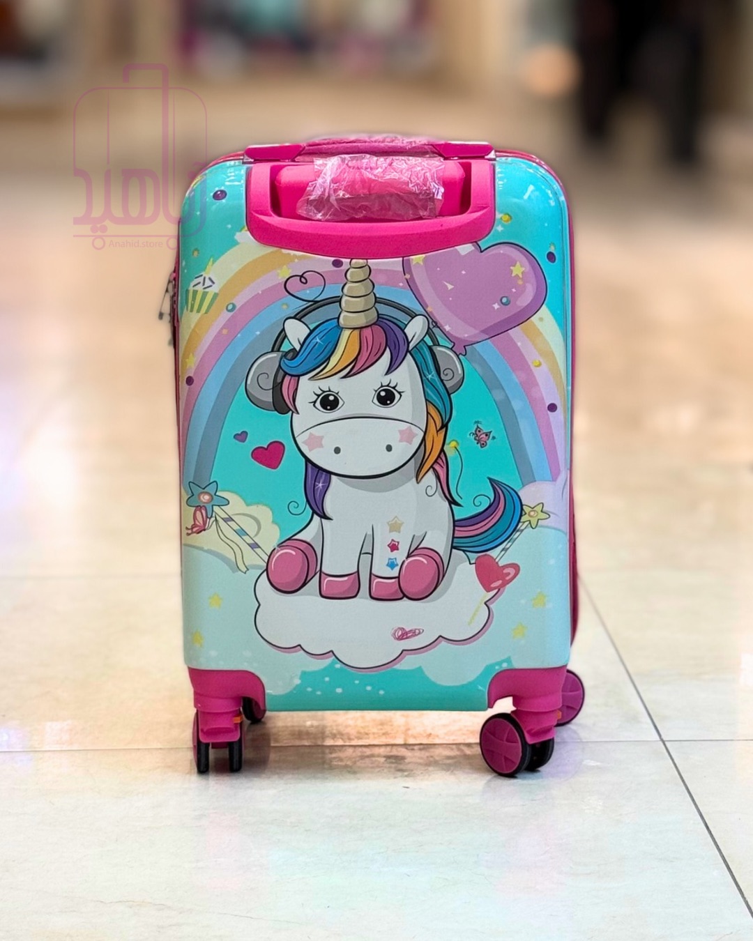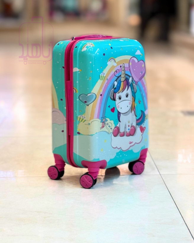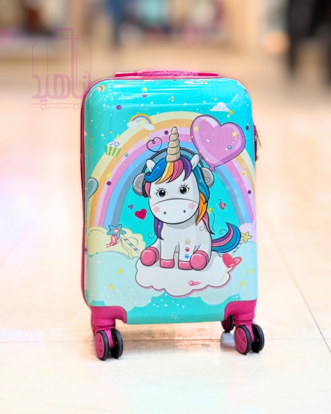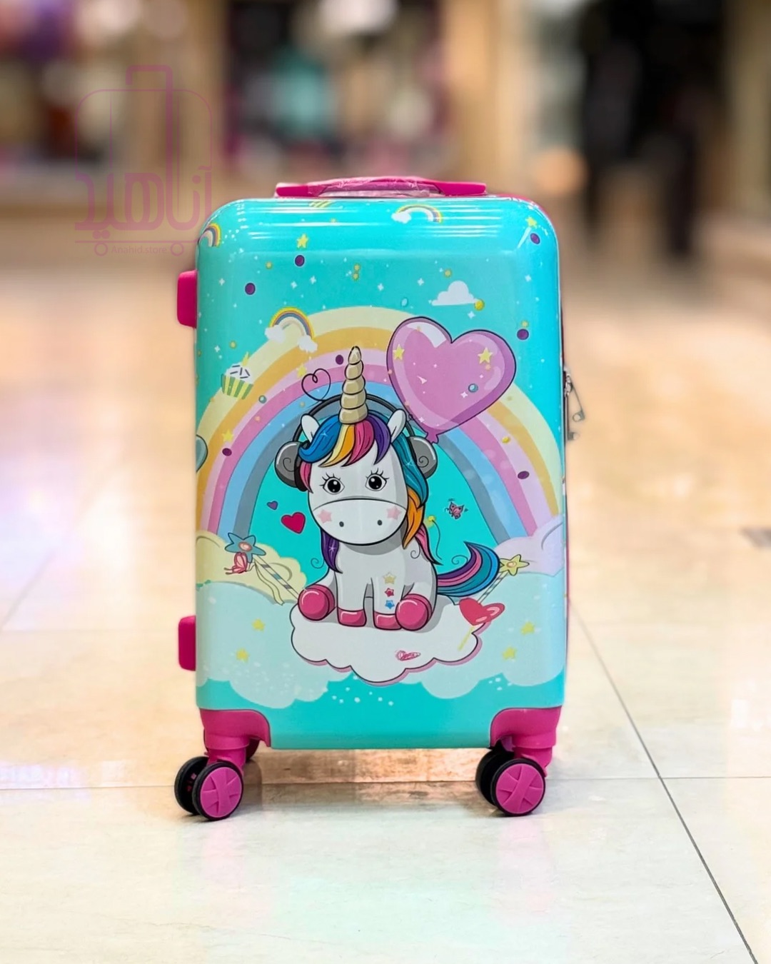 چمدان کودک فانتزی مدل کارتونی چرخ جداشو- طرح تک شاخ سبز