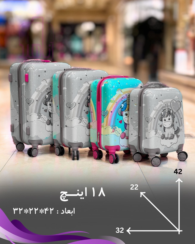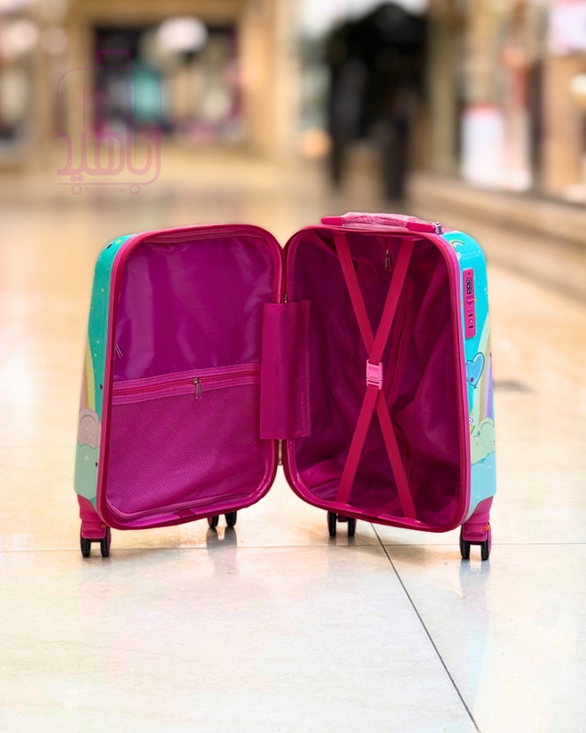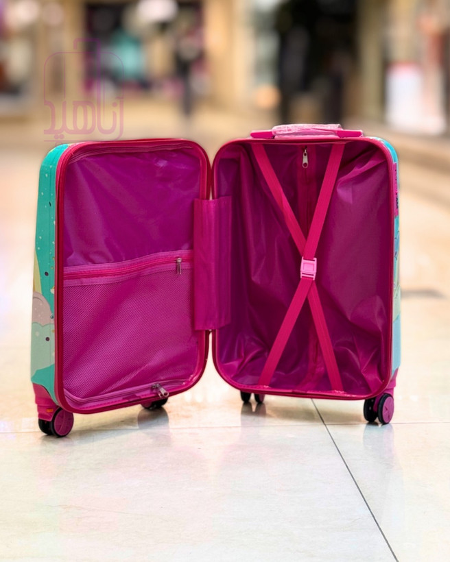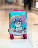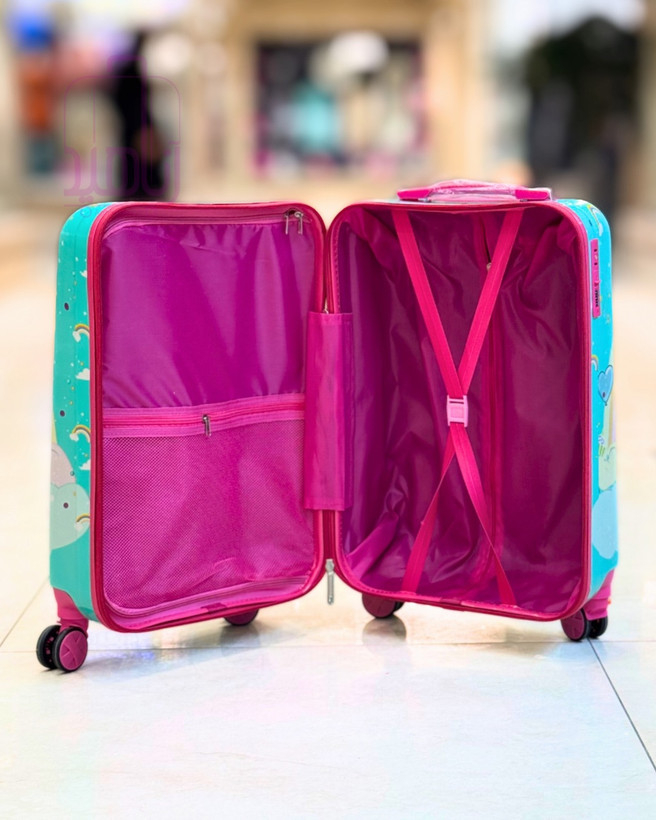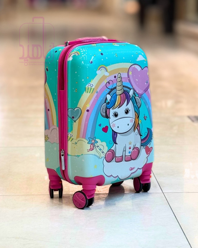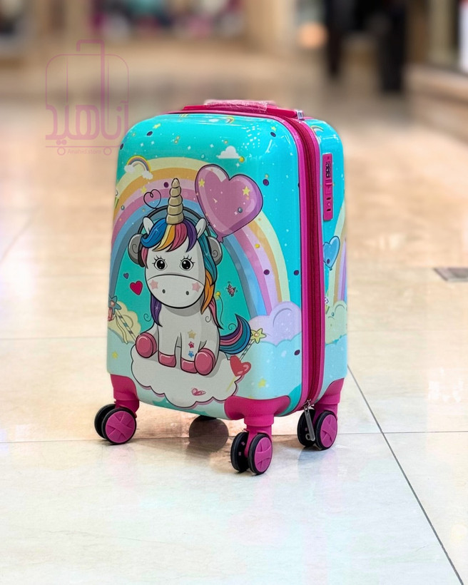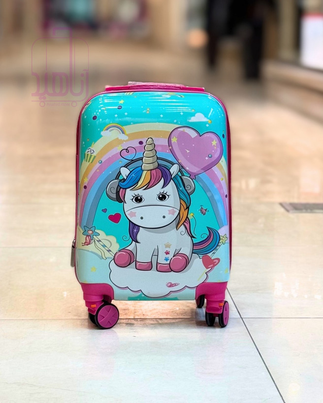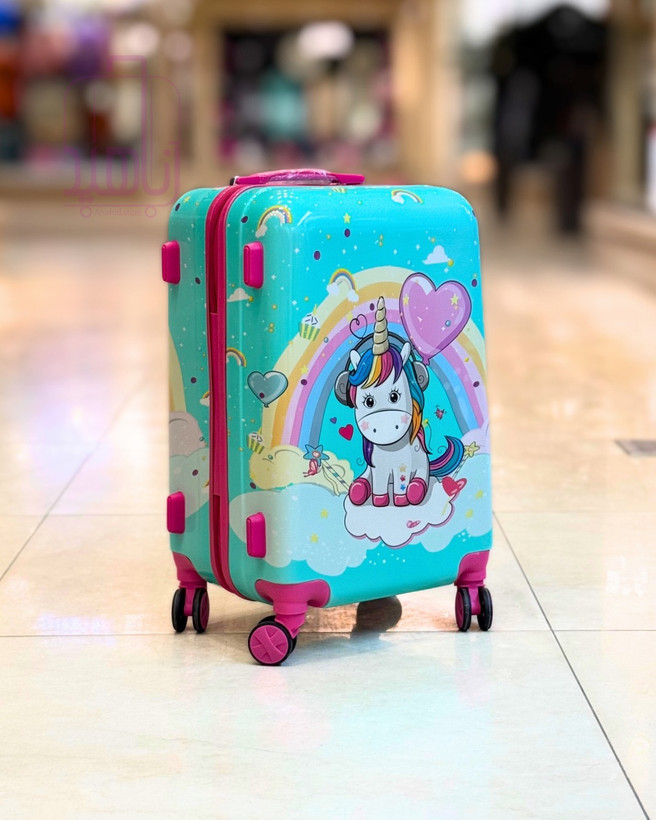 چمدان کودک فانتزی مدل کارتونی چرخ جداشو- طرح تک شاخ سبز