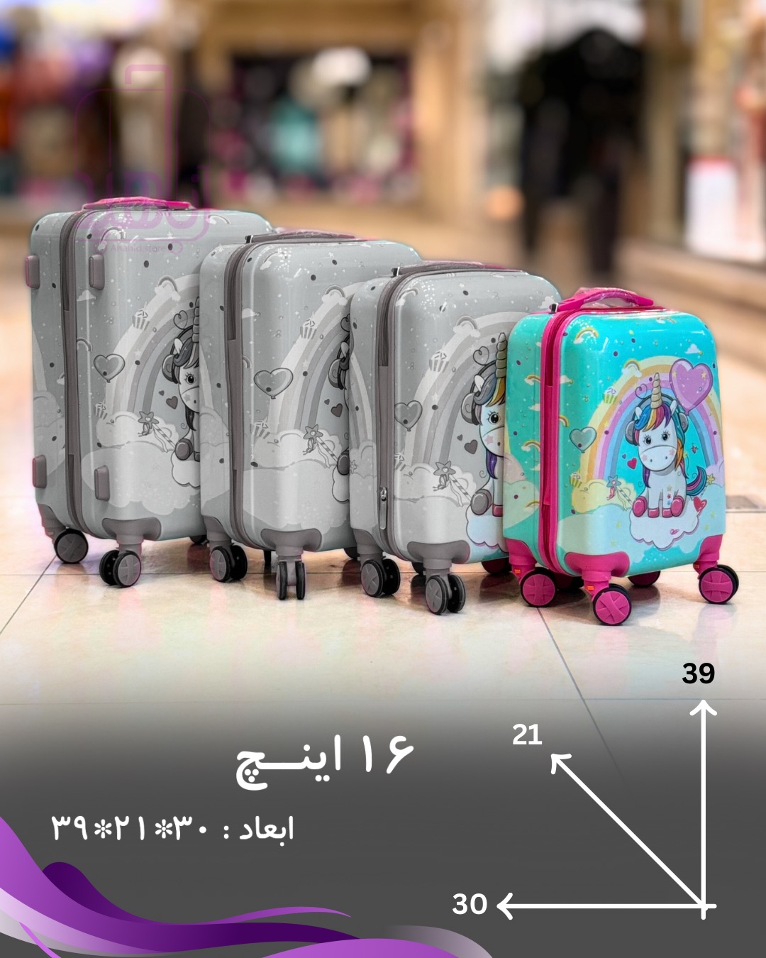 چمدان کودک فانتزی مدل کارتونی ۱۶ اینچ چرخ جداشو- طرح تکشاخ ۲