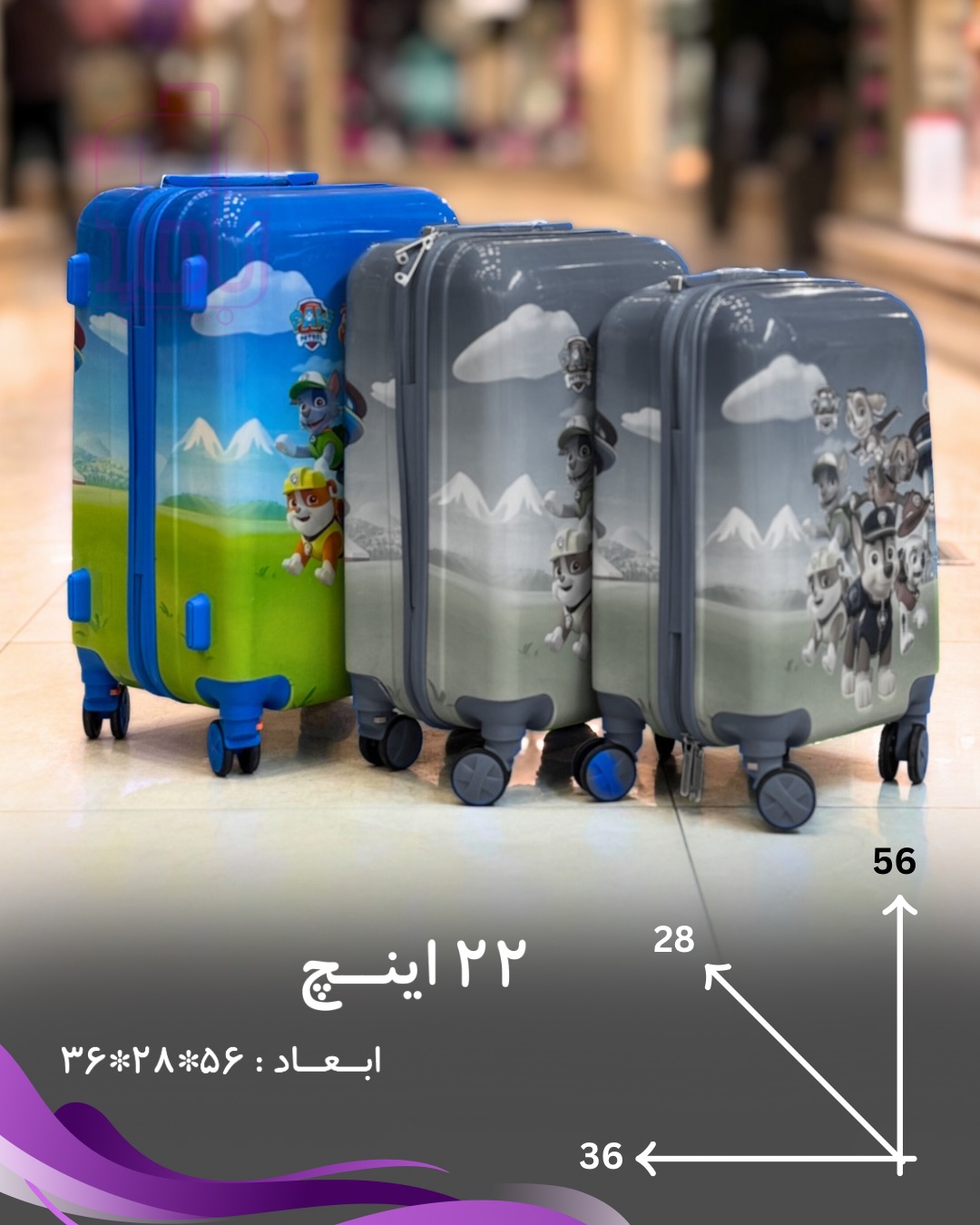 چمدان کودک فانتزی مدل کارتونی ۲۲ اینچ چرخ جداشو- طرح سگ های نگهبان ۱