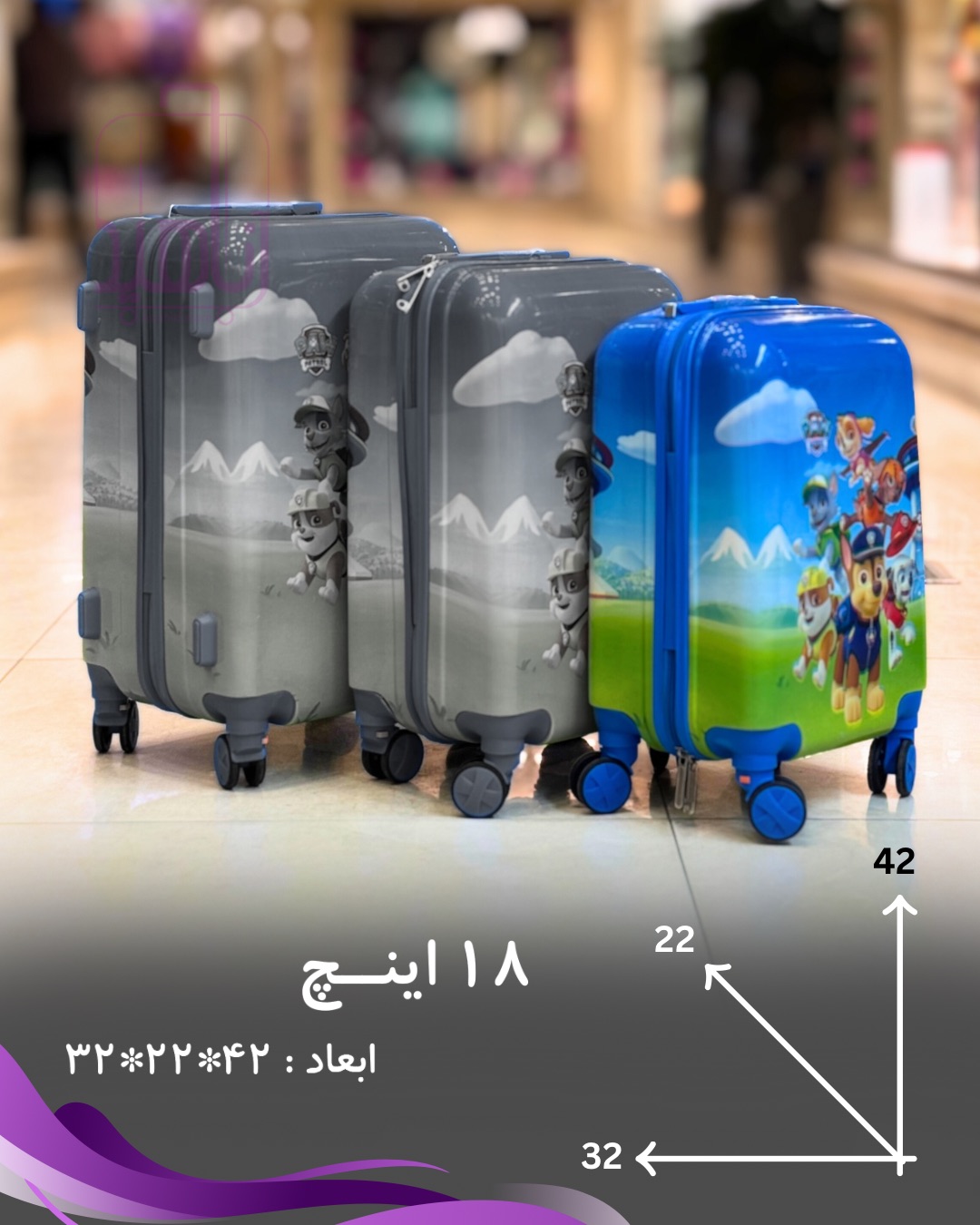 چمدان کودک فانتزی مدل کارتونی ۱۸ اینچ چرخ جداشو- طرح سگ های نگهبان ۱