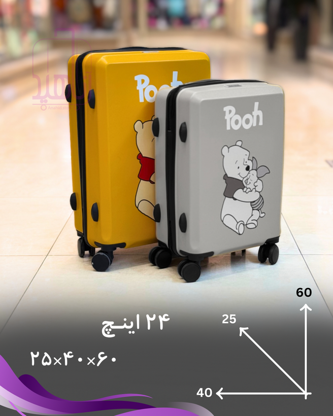 - سایز ۲۴ اینچ: ۶۰ × ۴۰ × ۲۵ سانتیمتر