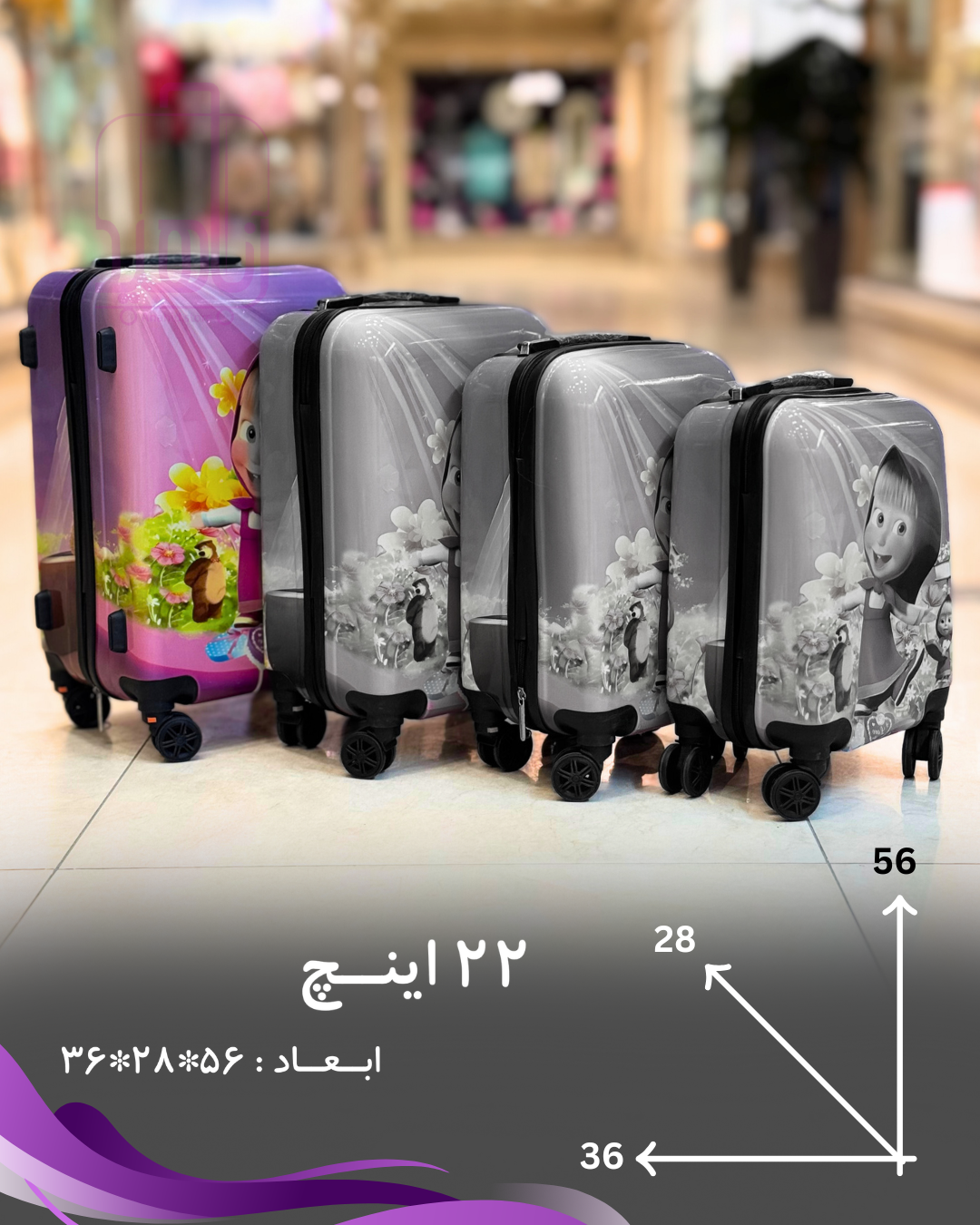 چمدان کودک فانتزی مدل کارتونی چرخ جداشو- طرح میشا وماشا