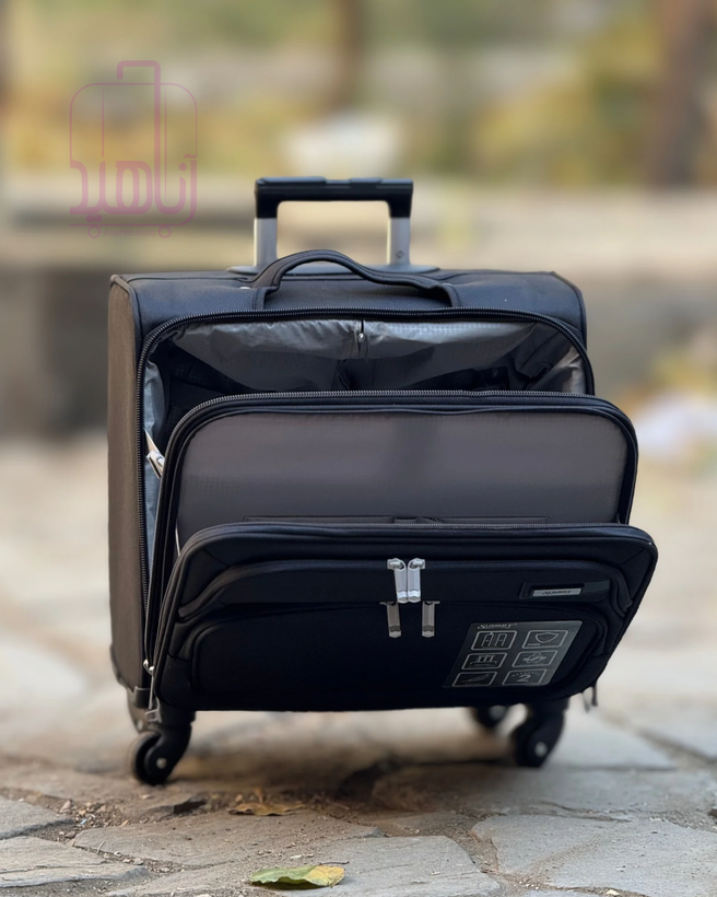 چمدان خلبانی وارداتی مسافرتی سایز کابین مدل بیزینسی با جیب لپتاپ و قفل TSA برند سامیت