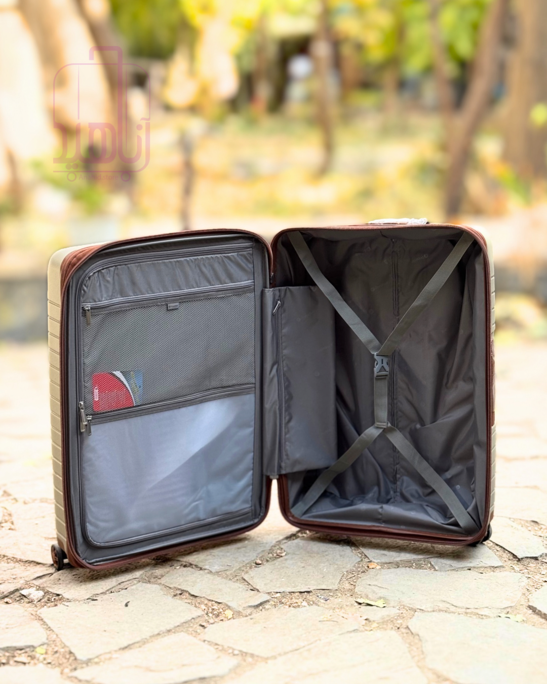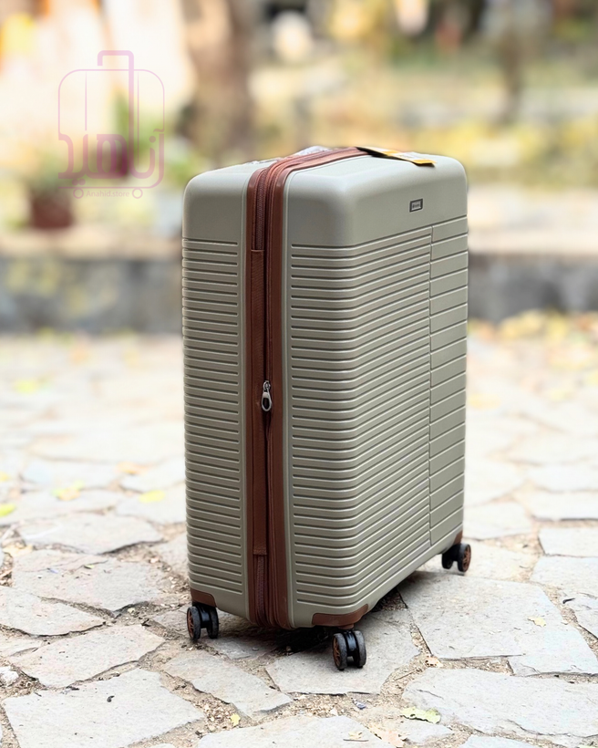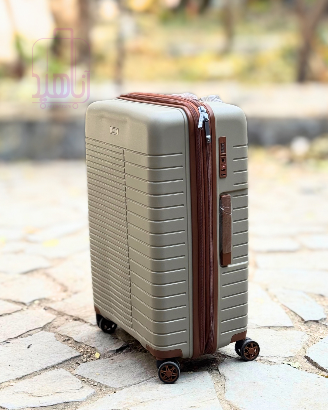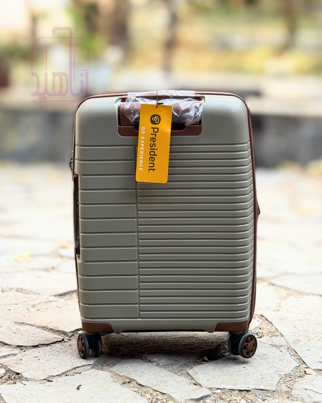 چمدان وارداتی برند پرزیدنت رنگ نسکافه ای جنس PP