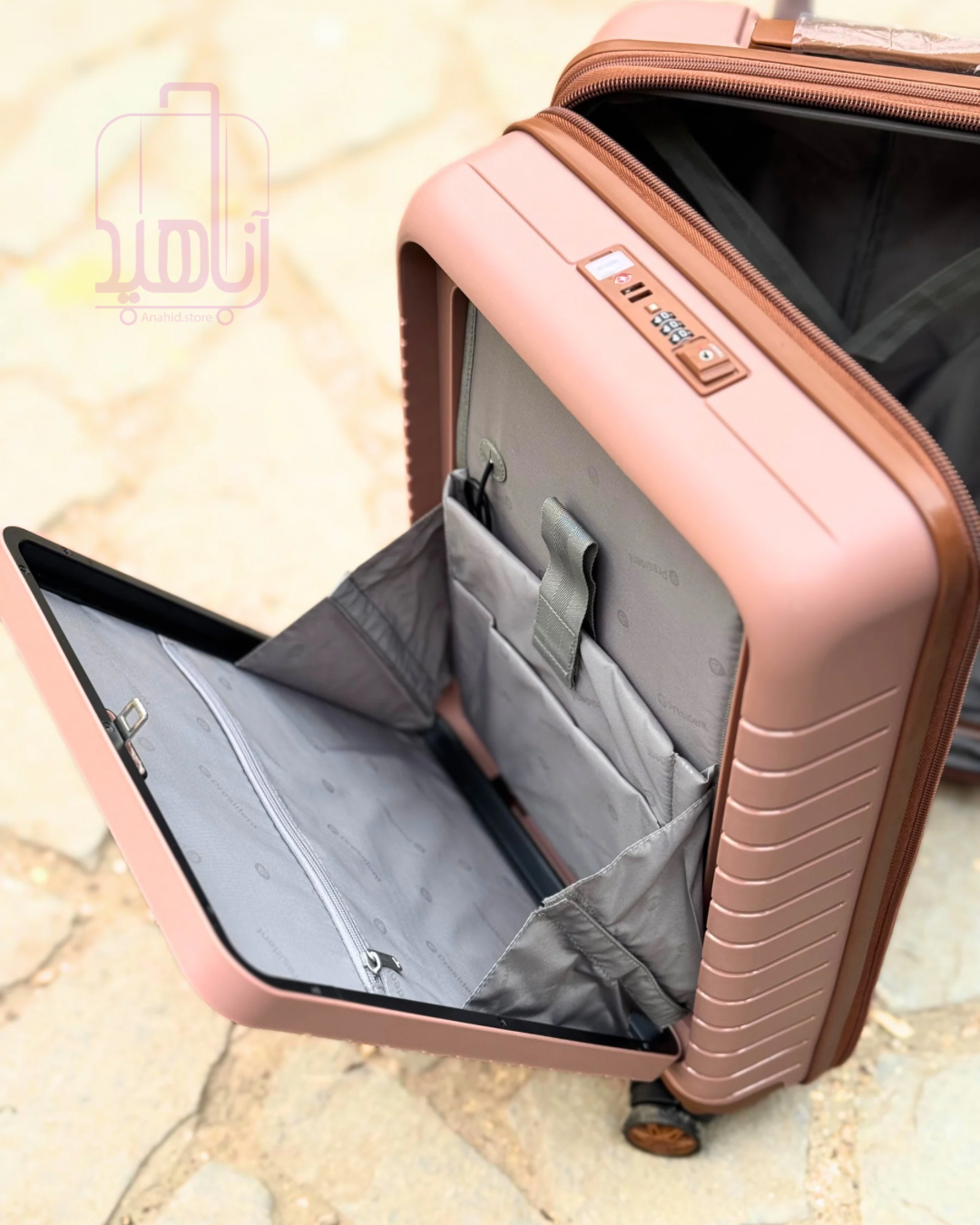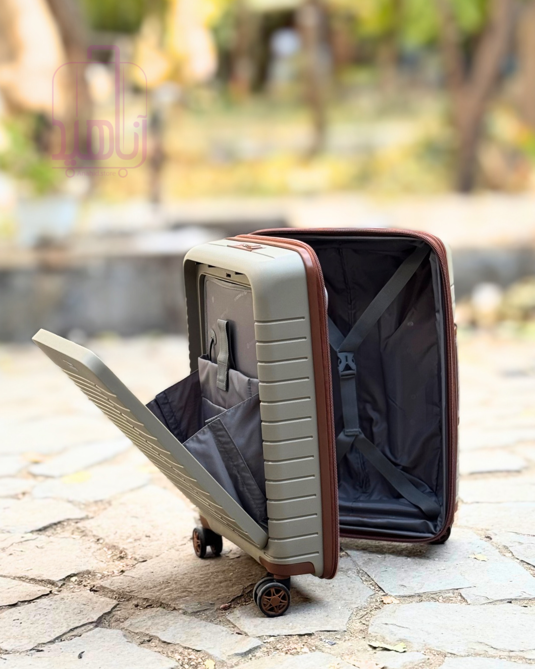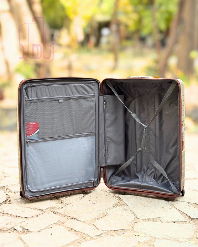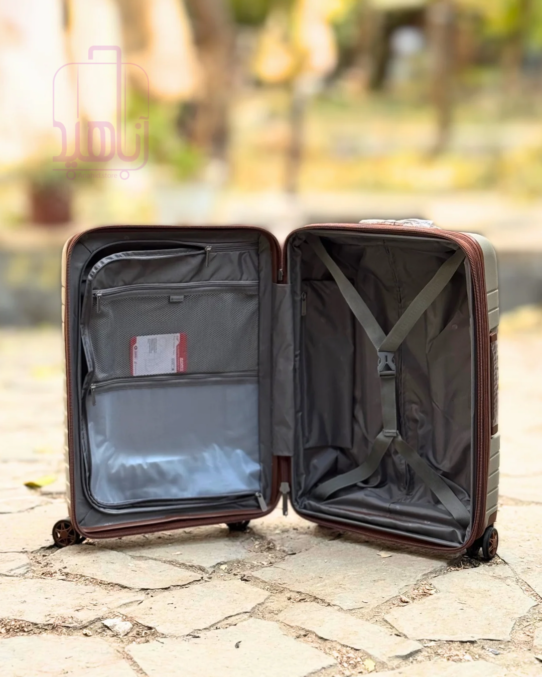 چمدان وارداتی برند پرزیدنت رنگ نسکافه ای جنس PP