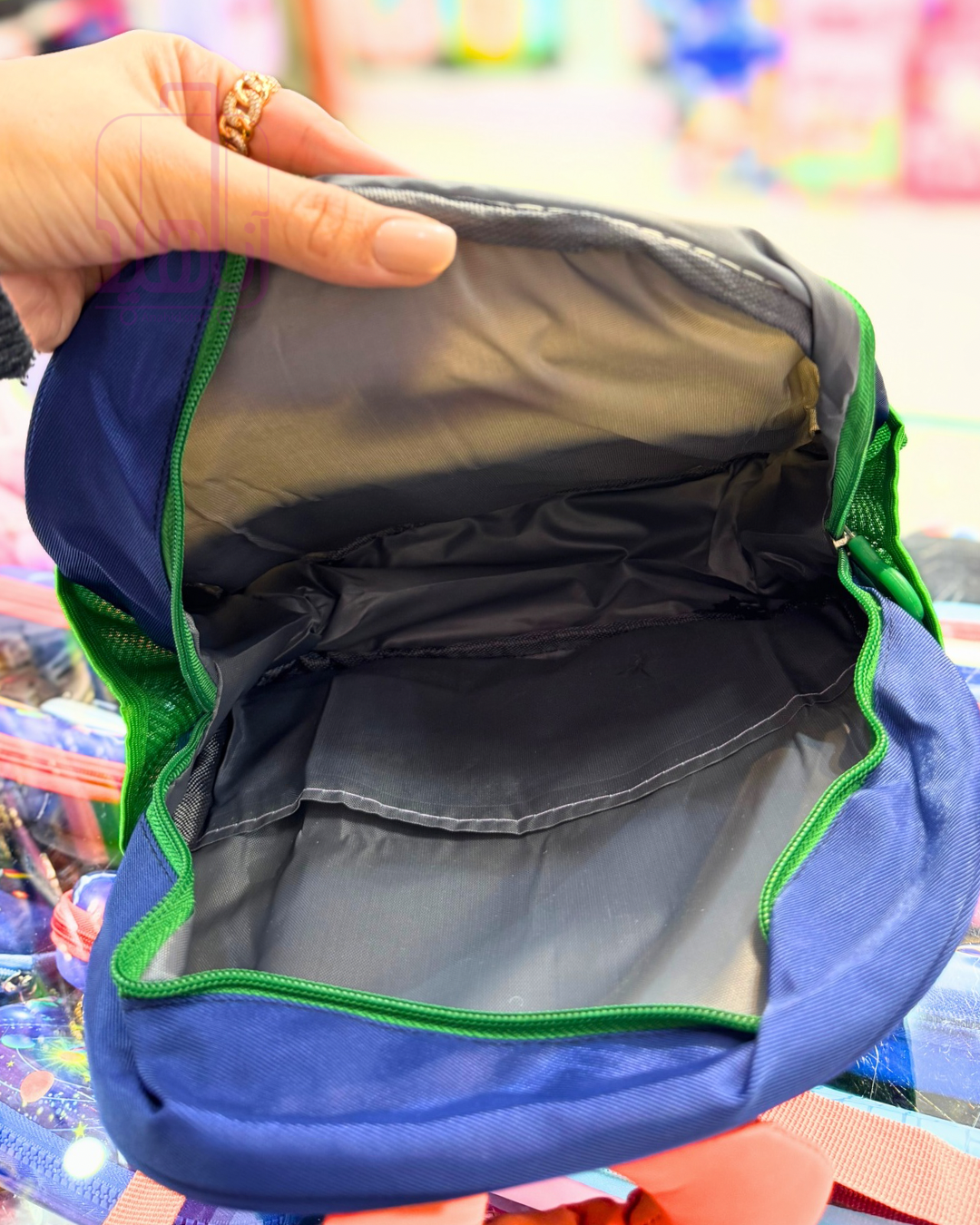 فضای داخلی کوله بهطور کامل آسترکشی شده و با توجه به ابعاد استاندارد ۳۳ × ۲۱ × ۱۰ سانتیمتر، فضای کافی برای قرار دادن کتاب، دفتر و سایر وسایل ضروری کودک را فراهم میکند. طراحی داخلی ساده و کاربردی، دسترسی آسان به وسایل را ممکن ساخته است.