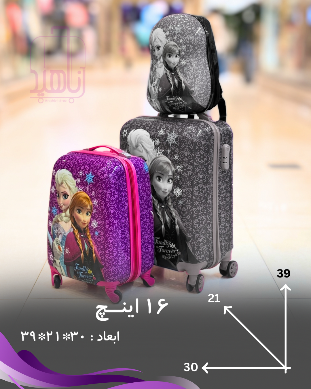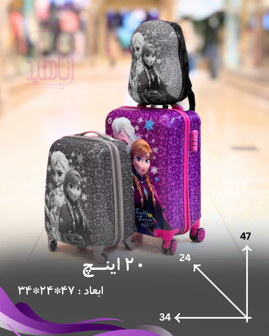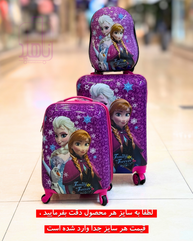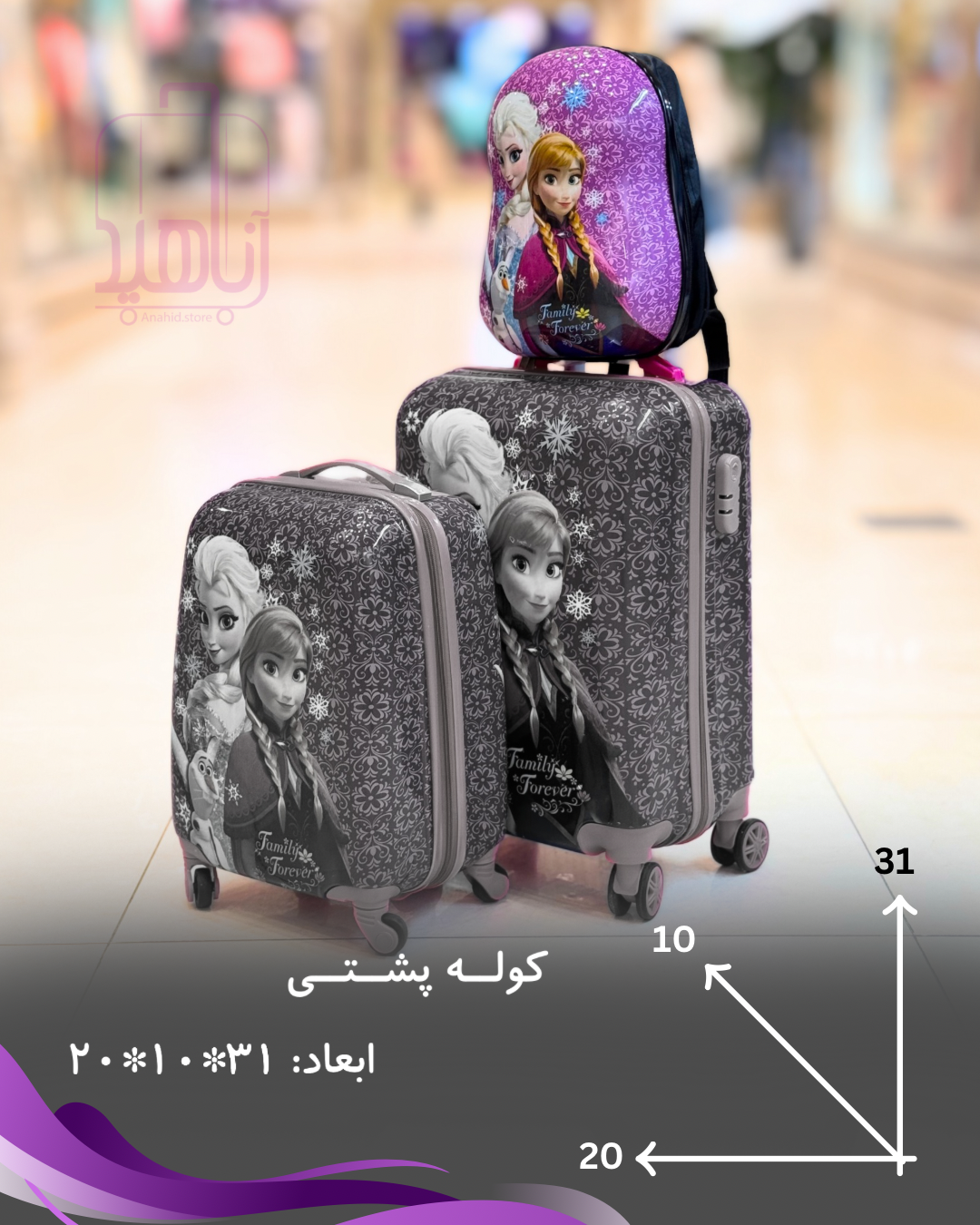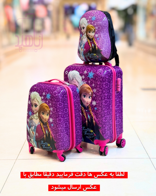 چمدان و کوله پشتی مدل السا و آنا بنفش – وارداتی- قیمت هر محصول جدا واردشده است