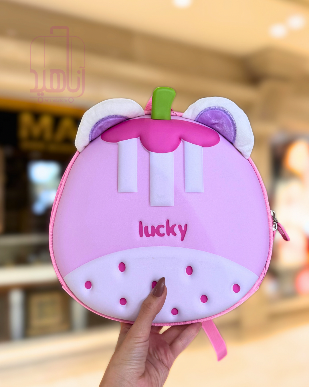 طراحی فانتزی توتفرنگی روی این کوله، آن را به یک هدیه عالی برای مهدکودک یا سفرهای روزانه کودک تبدیل کرده است.