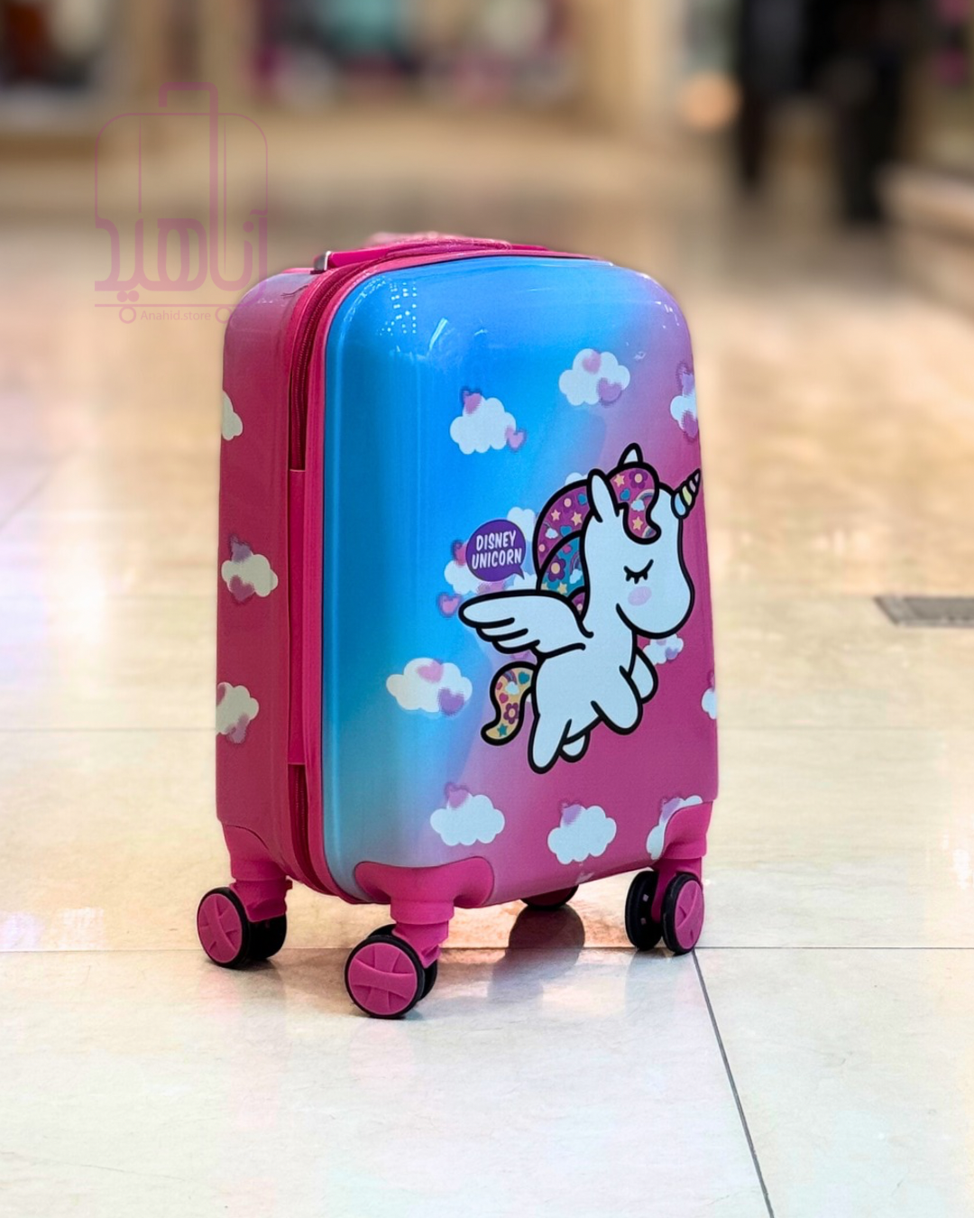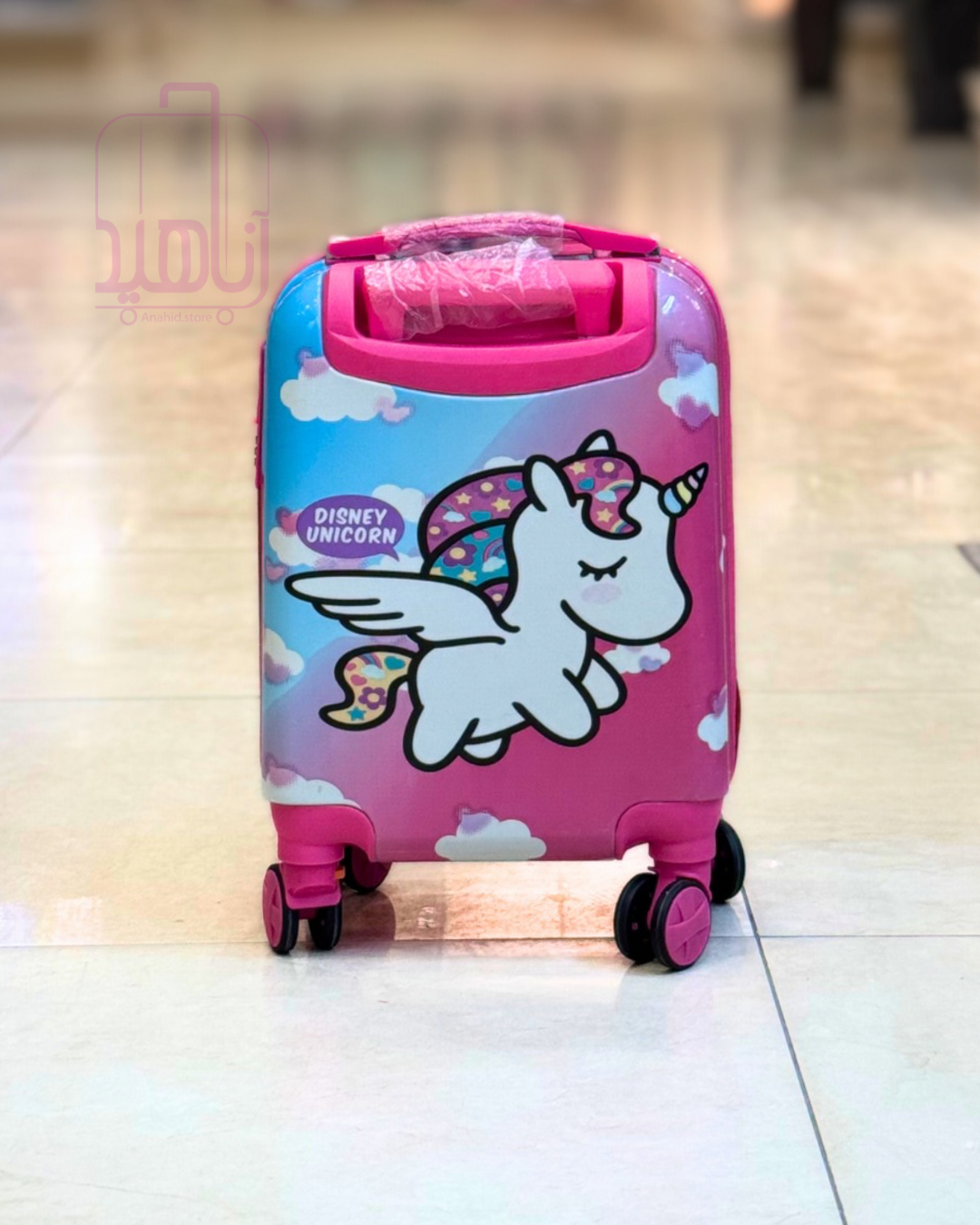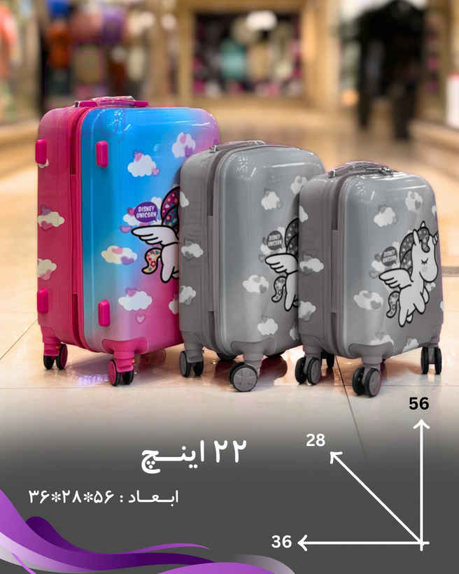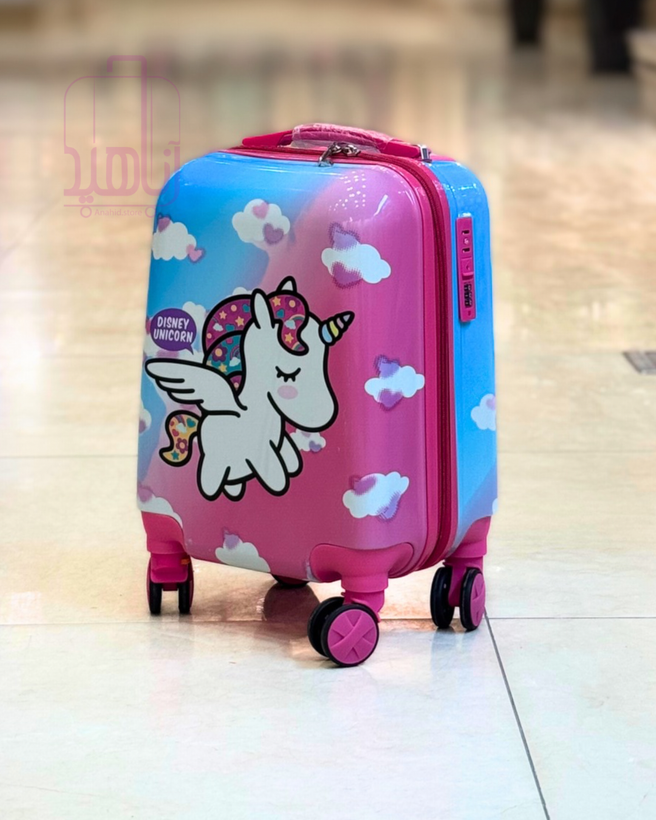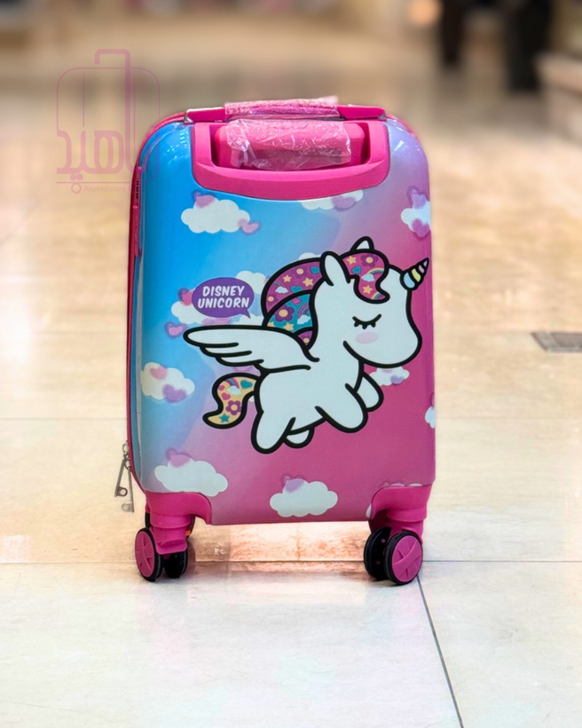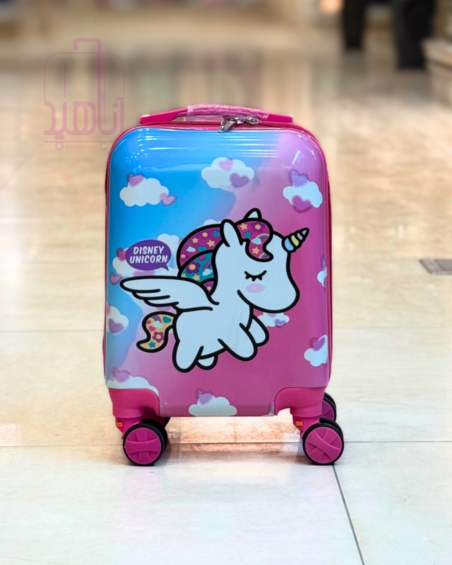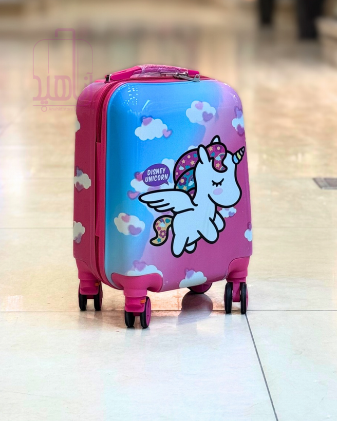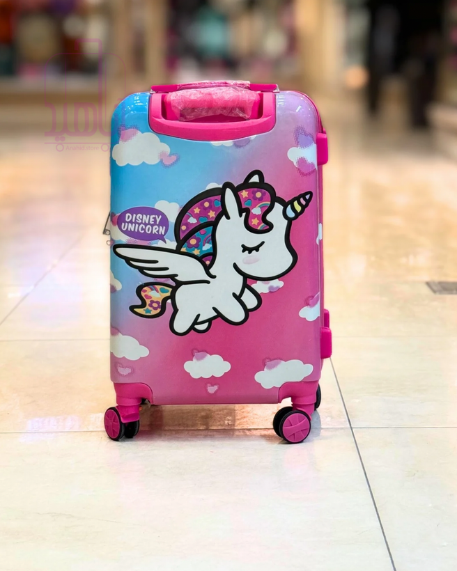 چمدان کودک فانتزی مدل کارتونی چرخ جداشو- طرح تک شاخ آبی