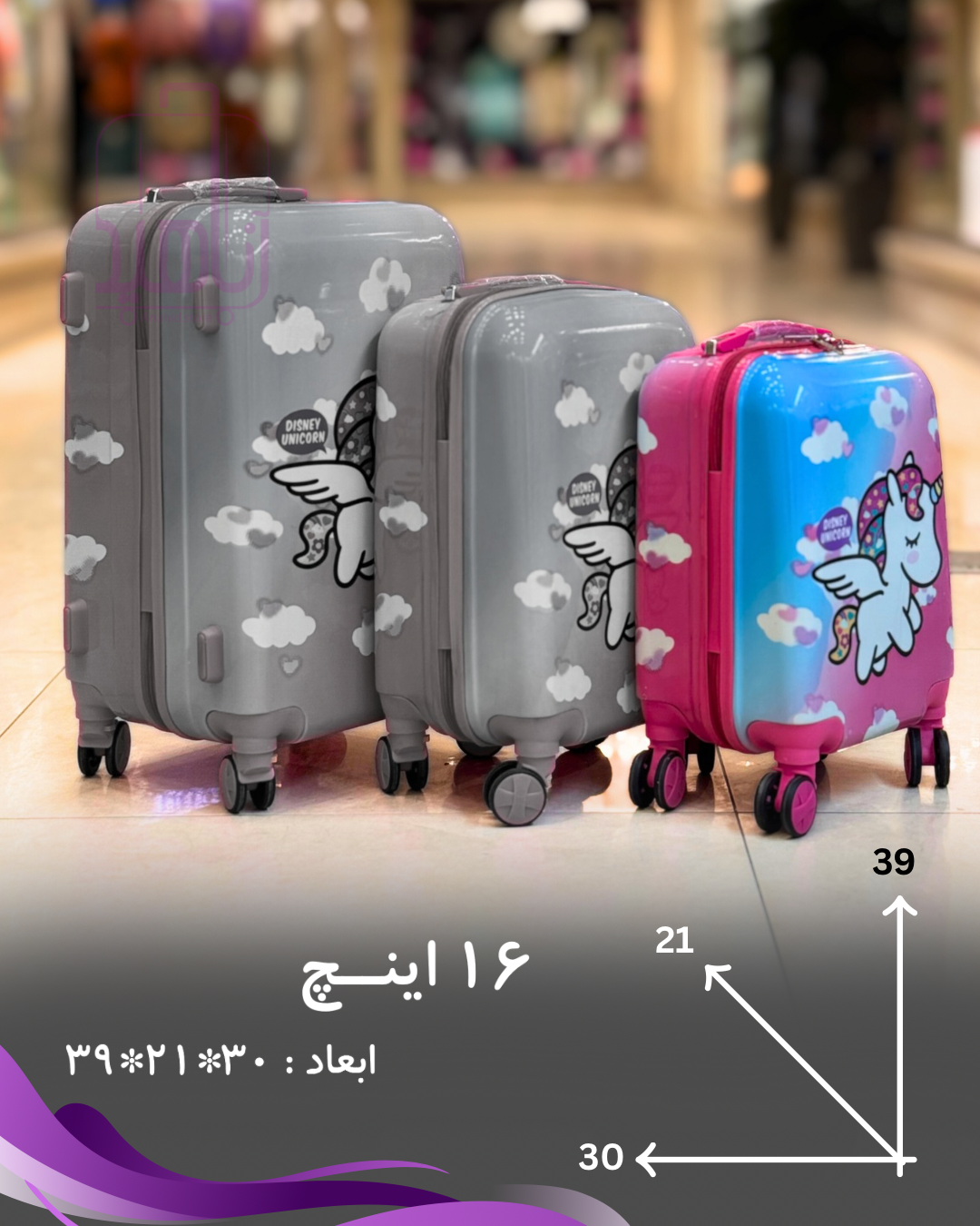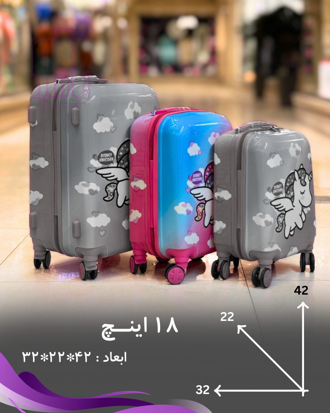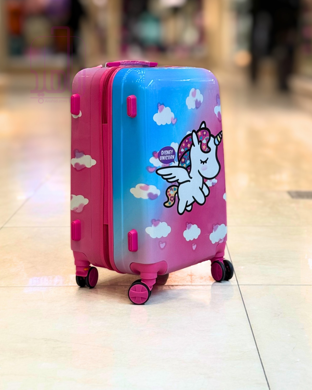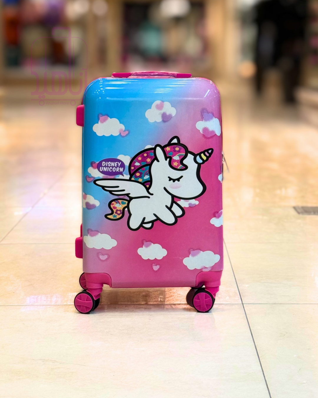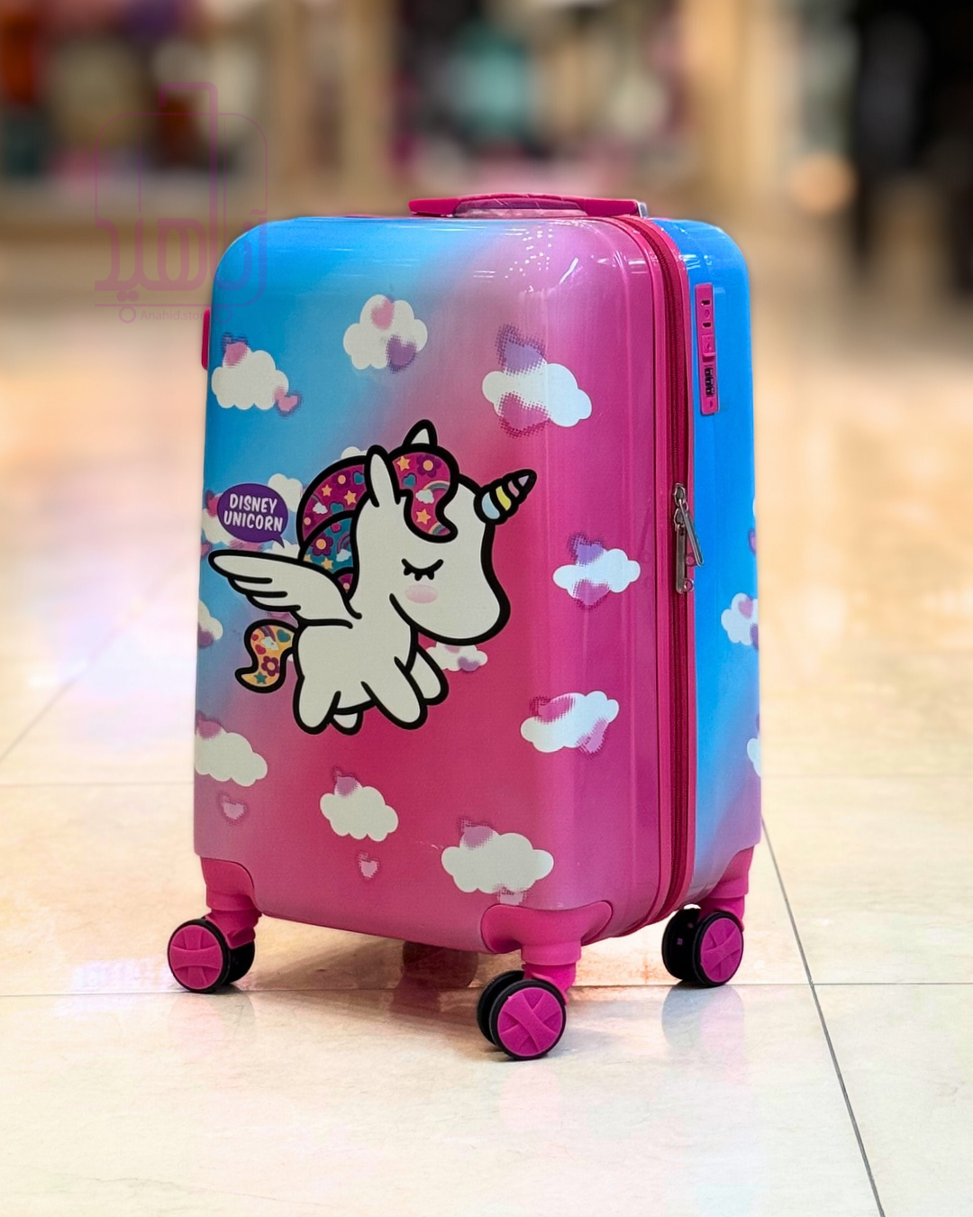 چمدان کودک فانتزی مدل کارتونی چرخ جداشو- طرح تک شاخ آبی