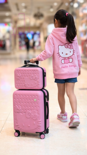 چمدان کودک دخترانه طرح کیتی ست دو تیکه -صورتی